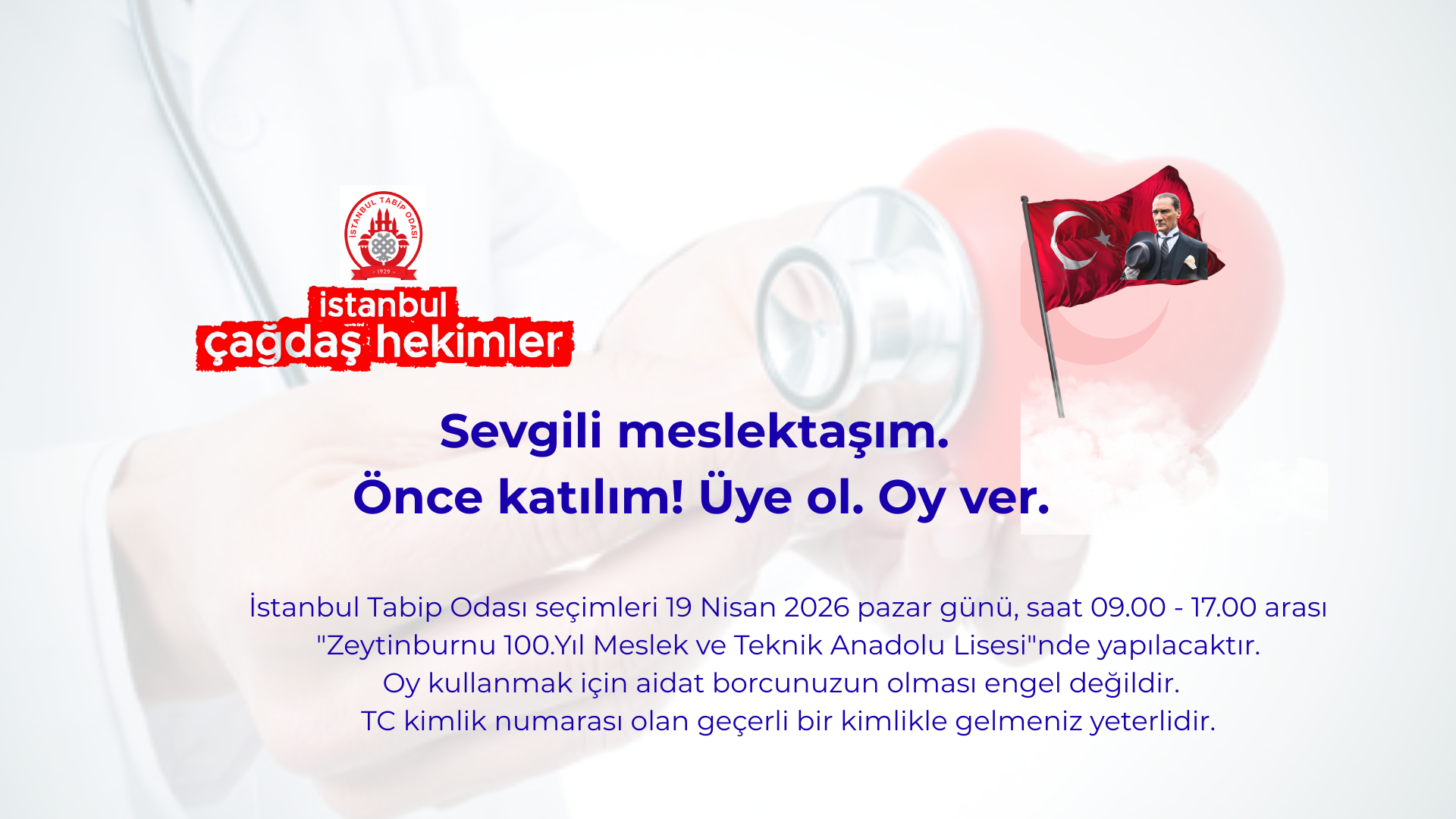 İstanbul Çağdaş Hekimler Grubu olarak 2024 yılında Çağdaş Hekimler Birliği listesi ile yaklaşık 1.000 oy desteğinizi almıştık. Ancak seçim kazanmamız için en az 2.000 oya daha ihtiyacımız var. Ne yazık ki 19 Nisan'da yapılacak seçime yönelik sürdürdüğümüz hazırlık çalışmasında gerekli olan bu desteği hekim kamuoyundan göremedik. Ülkemizde mevcut antidemokratik baskı ortamından hekimlerin de etkilendiğini tespit ettik. Meslek odamızın bağımsızlığının korunması, hekimlerin hak temelli mücadelesinin sürdürülmesi gerektiğinden hareketle, bu süreçte bir seçenek olarak, Tabip Odası yönetimine aday olabilecek, temsil yeteneği yüksek, katılımcı ve kapsayıcı bir liste oluşturmaya yönelik çabalarımıza da maalesef olumlu yanıt alamadık. Küçük olsun bizim olsun diye özetlenebilecek dar grupçu, kısır anlayışı aşamadık.